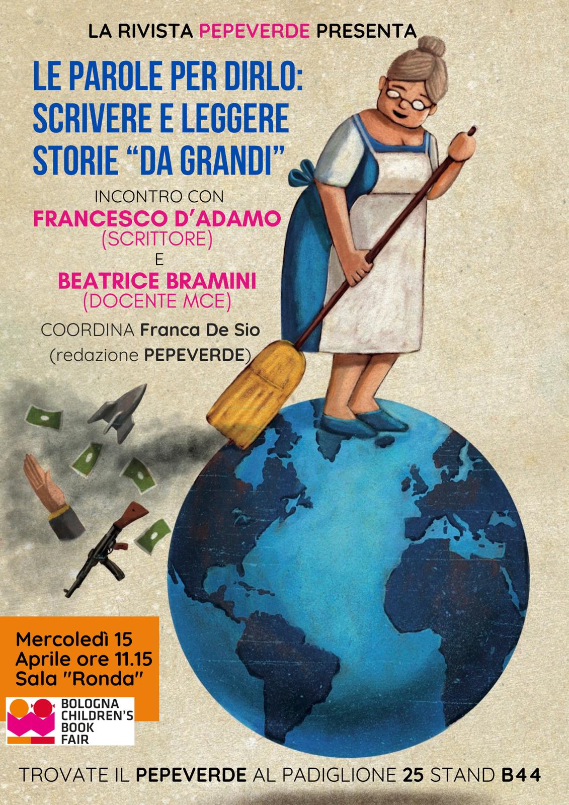 Edizioni Conoscenza con la rivista Pepeverde organizza mercoledì 15 aprile alle ore 11.15 presso la sala Ronda un incontro tra lo scrittore Francesco D’Adamo e la docente Beatrice Bramini, coordinato dalla redattrice ed ex bibliotecaria Franca De Sio, su un tema difficile: come spiegare a bambini e adolescenti le tragedie che attualmente il mondo sta vivendo. Bambini e adolescenti, soprattutto attraverso i social, assistono a episodi di violenza, alle guerre e agli stermini, ai disastri ambientali, al dramma dei migranti… Aiutarli a capire senza traumatizzarli. Questa la grande responsabilità degli adulti: i genitori, certo, ma anche gli educatori, gli intellettuali e gli scrittori.